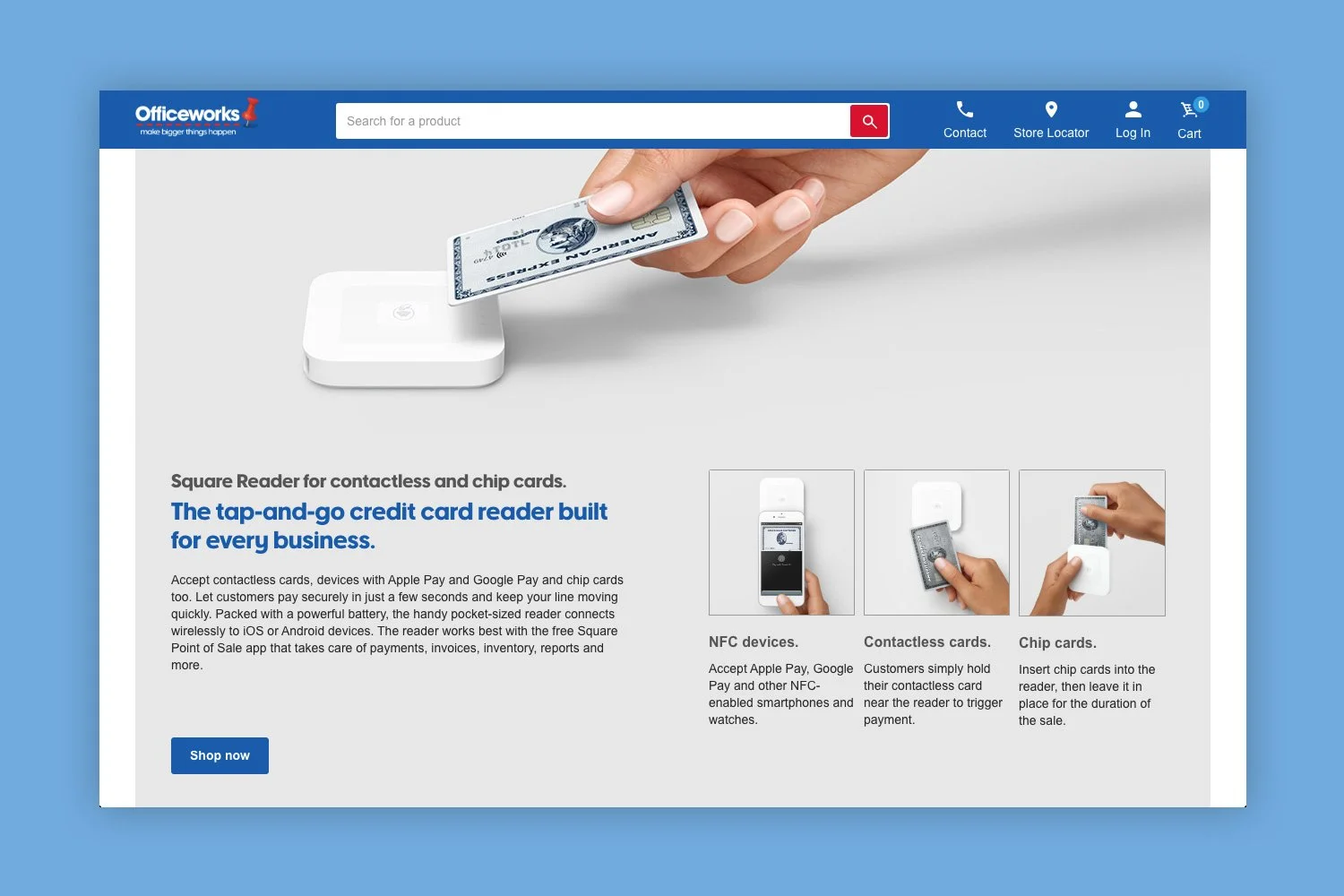 Landing page to showcase the range of Square point-of-sale solutions