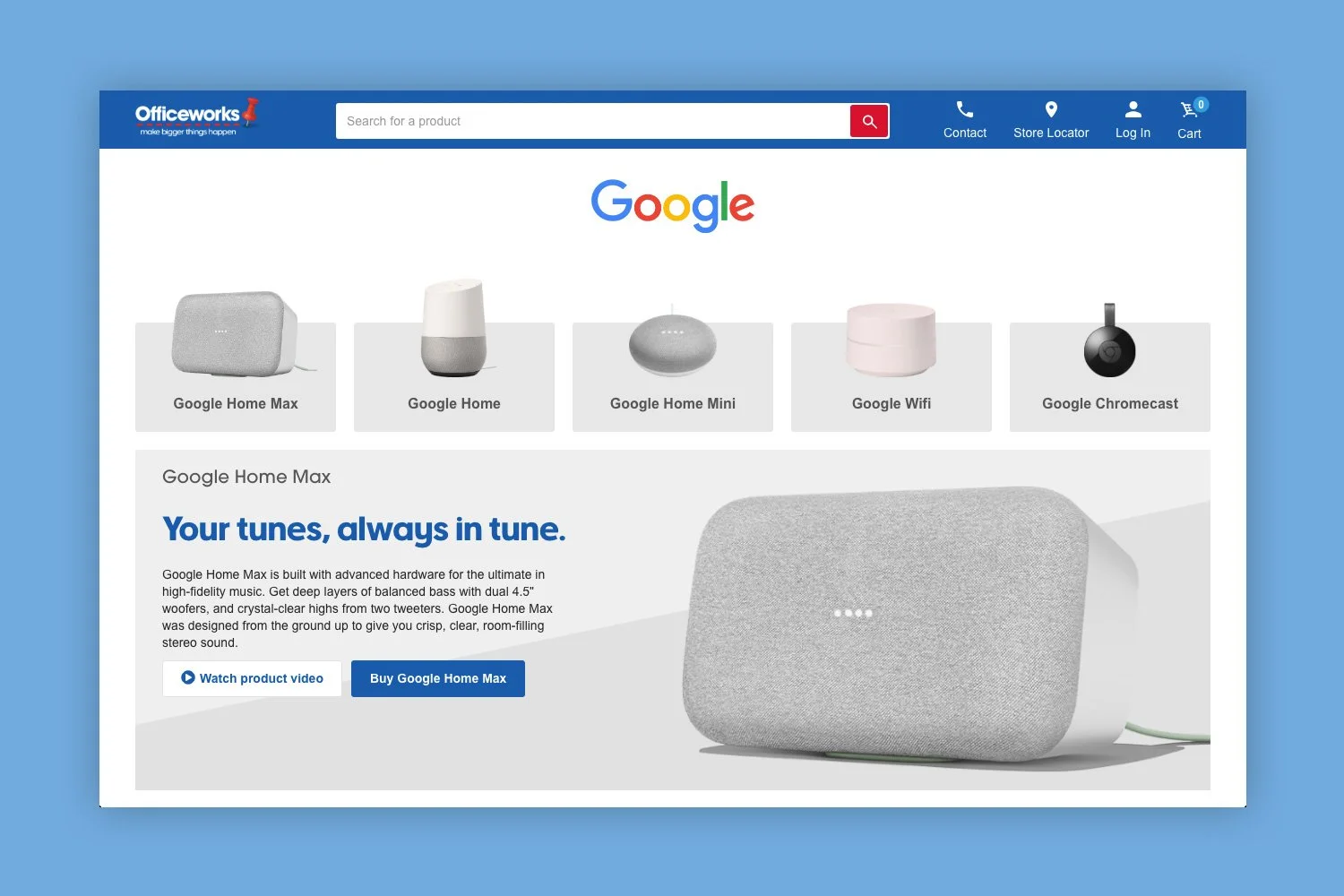 Brand landing page for the Google product range