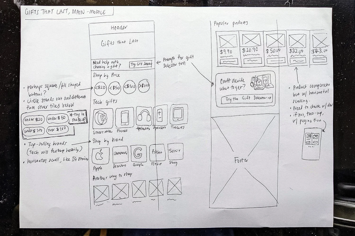 Wireframes for gift ideas tool