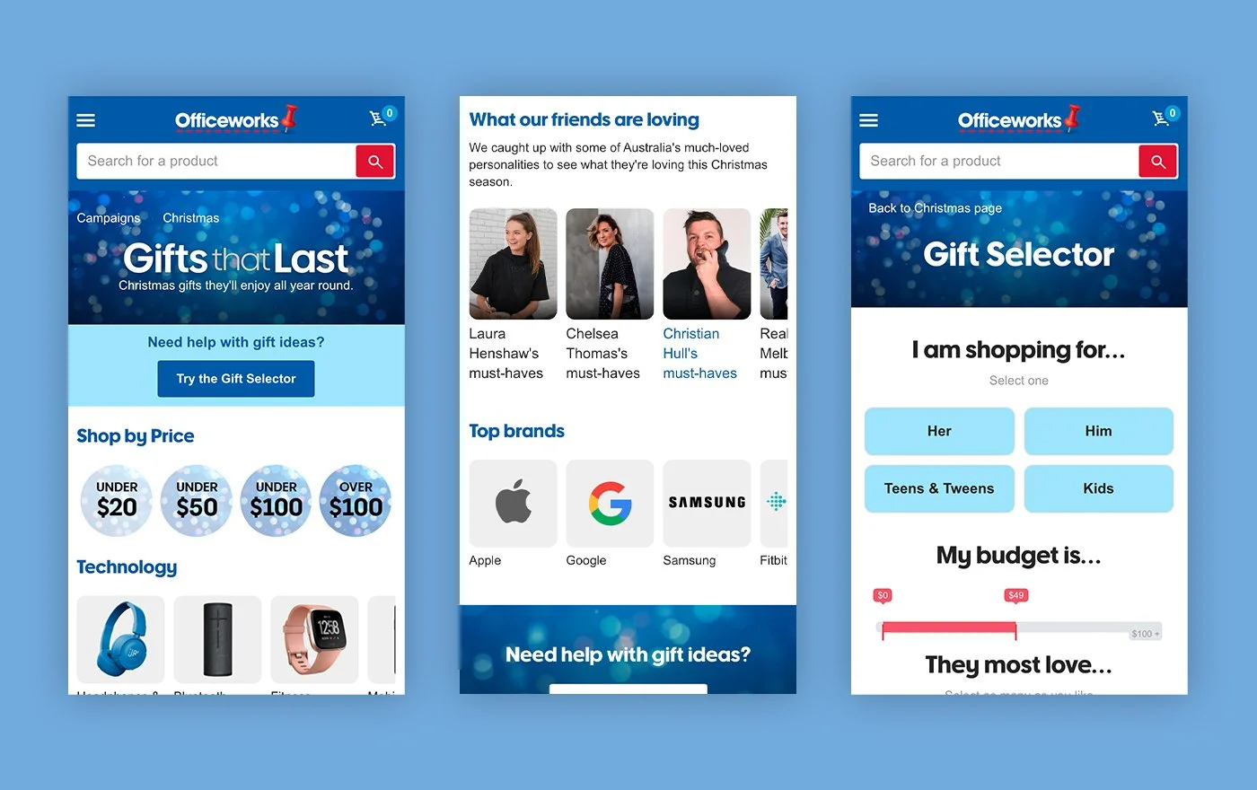 The Christmas campaign was a success and continued to build upon Officeworks’ strength as a destination for gifts that last.
